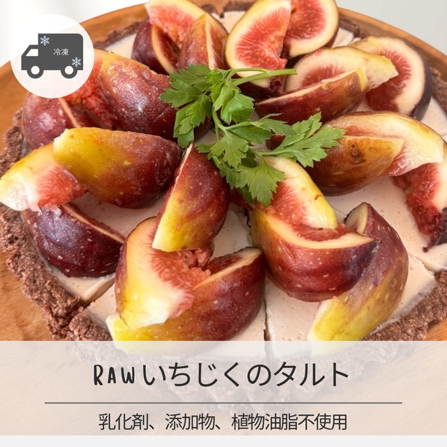 濃厚で甘美な味わい、フルーツ好きにおすすめ! Raw季節のフルーツのタルト 18cm! 厳選された旬のフルーツ使用したこのタルトは、自然な甘さが引き立つ絶妙な調和を実現しています。 フィリングはレアチーズケーキがベース。 くるみを用いたしっとりとしたタルト生地とフレッシュなフルーツの風味が口の中で広がり、一口ごとに贅沢なひとときを楽しませてくれます。 おやつや特別な日のデザートにぴったりです! 旬のフルーツを使いますので、写真とは異なるフルーツでのデコレーションとなります。 ■ サイズ/バリエーション 18cmホールサイズでご提供。 ご家庭でのおやつタイムや特別な集まりに最適です。カットしてシェアするのもおすすめです! ■ 素材/製造国 厳選された生のフルーツ、オーガニックな素材を使用し、日本国内の菓子製造許可工房で丁寧に手作りされています。安心してお召し上がりいただけるよう、品質にこだわっています。 ■ 取り扱い注意事項 冷凍保存をおすすめし、冷蔵庫で解凍後はお早めにお召し上がりください。解凍後の再冷凍はお控えください。 ■ 発送・注文に関する情報や注意事項 ご注文が確定した後、7日以内に発送いたします。冷凍便でのお届けのため、配送地域に関する条件をあらかじめご確認ください。 ■ その他の情報や注意事項 賞味期限は製造から冷凍で一か月です。開封後はお早めにお召し上がりください。アレルギーをお持ちの方は、原材料をよくご確認の上ご購入いただくことをおすすめします。 ご不明な点やご質問がある場合は、ショップのお問い合わせからお気軽にどうぞ! 濃厚で甘美な味わい、フルーツ好きにおすすめ!Rawいちじくのタルト 18cm! 厳選された生のいちじくを使用したこのタルトは、自然な甘さが引き立つ絶妙な調和を実現しています。しっとりとしたタルト生地とフレッシュないちじくの風味が口の中で広がり、一口ごとに贅沢なひとときを楽しませてくれます。おやつや特別な日のデザートにぴったりです! ■ サイズ/バリエーション 18cmホールサイズでご提供。ご家庭でのおやつタイムや特別な集まりに最適です。カットしてシェアするのもおすすめです! ■ 素材/製造国 厳選された生のいちじく、オーガニックな素材を使用し、日本国内の菓子製造許可工房で丁寧に手作りされています。安心してお召し上がりいただけるよう、品質にこだわっています。 ■ 取り扱い注意事項 冷凍保存をおすすめし、冷蔵庫で解凍後はお早めにお召し上がりください。解凍後の再冷凍はお控えください。 ■ 発送・注文に関する情報や注意事項 ご注文が確定した後、7日以内に発送いたします。冷凍便でのお届けのため、配送地域に関する条件をあらかじめご確認ください。 ■ その他の情報や注意事項 賞味期限は製造から冷凍で一か月です。開封後はお早めにお召し上がりください。アレルギーをお持ちの方は、原材料をよくご確認の上ご購入いただくことをおすすめします。 ご不明な点やご質問がある場合は、ショップのお問い合わせからお気軽にどうぞ!