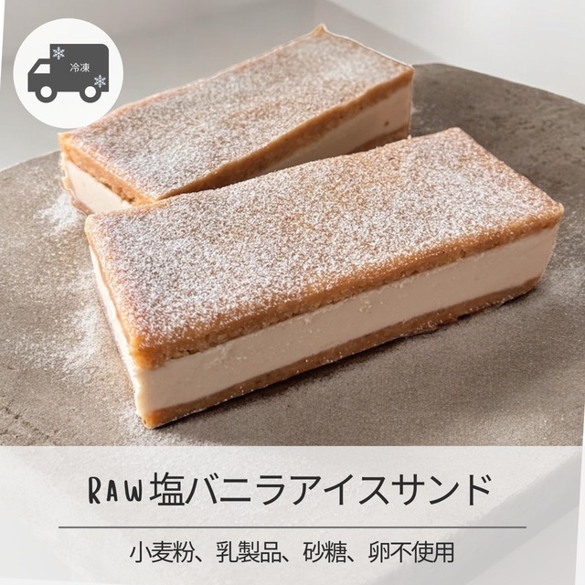 濃厚で甘美な味わい、Raw塩バニラアイスサンドの魅力をお届けします! アクセントに厳選されたゲランドの塩を使用し、添加物や砂糖を一切使わないこのアイスサンドは、健康志向の方や自然な甘さを求める方に最適です。バニラの芳醇な香りと海塩との絶妙なバランスが、口の中で広がり、至福のひとときを演出します。特別な日のデザートや日常のおやつにもぴったりな一品です! ■ サイズ/バリエーション 14cm×11.5cmサイズのアイスサンドを2つにカットし箱詰め。 お好きな個数にカットしいつでも手軽にお楽しみいただけます。 ■ 素材/製造国 ゲランドの塩、そして天然由来の素材をふんだんに使用し、日本国内の菓子製造許可工房で丁寧に手作りされています。品質にこだわり、安心してお召し上がりいただけます。 ■ 取り扱い注意事項 冷凍での保存をおすすめし、冷蔵庫で解凍後はお早めにお召し上がりください。解凍後の再冷凍はお控えください。 ■ 発送・注文に関する情報や注意事項 ご注文が確定した後、7日以内に発送いたします。冷凍便でのお届けのため、配送地域に関する条件をあらかじめご確認ください。 ■ その他の情報や注意事項 賞味期限は製造から冷凍で一カ月です。開封後はお早めにお召し上がりください。アレルギーをお持ちの方は、原材料をよくご確認の上ご購入いただくことをおすすめします。 ご不明な点やご質問がある場合は、ショップのお問い合わせからお気軽にどうぞ!