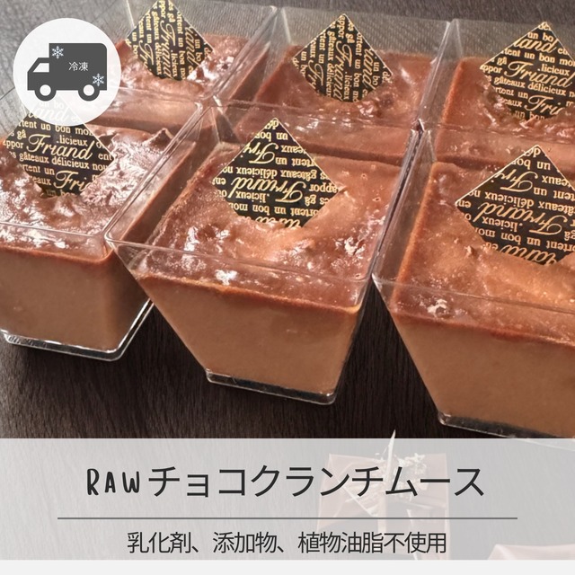 濃厚でザクザクな食感、甘さ控えめでヘルシー志向のおやつにピッタリ!Rawチョコクランチムース4個セット。 厳選されたRawカカオを使用したこのムースは、クリーミーなチョコレートと香ばしいクランチが絶妙に組み合わさっています。一口食べれば、リッチなチョコレートの風味とサクサクした食感が楽しめる、特別なデザートです。ダイエット中でも安心してお楽しみいただけます! ■ サイズ/バリエーション 食べきりサイズのカップでご提供。 おやつタイムや特別な集まりにぴったりです。友達や家族とシェアして楽しむのもおすすめ! ■ 素材/製造国 厳選されたオーガニックRawカカオ、自然由来の甘味料、植物性素材を使用し、日本国内の菓子製造許可工房で手作りされています。安心してお召し上がりいただけるよう、品質にこだわっています。 ■ 取り扱い注意事項 冷凍保存をおすすめし、冷蔵庫で解凍後はお早めにお召し上がりください。解凍後の再冷凍はお控えください。 ■ 発送・注文に関する情報や注意事項 ご注文が確定した後、7日以内に発送いたします。冷凍便でのお届けのため、配送地域に関する条件をあらかじめご確認ください。 ■ その他の情報や注意事項 賞味期限は製造から冷凍で一カ月です。開封後はお早めにお召し上がりください。アレルギーをお持ちの方は、原材料をよくご確認の上ご購入いただくことをおすすめします。 ご不明な点やご質問がある場合は、ショップのお問い合わせからお気軽にどうぞ!
